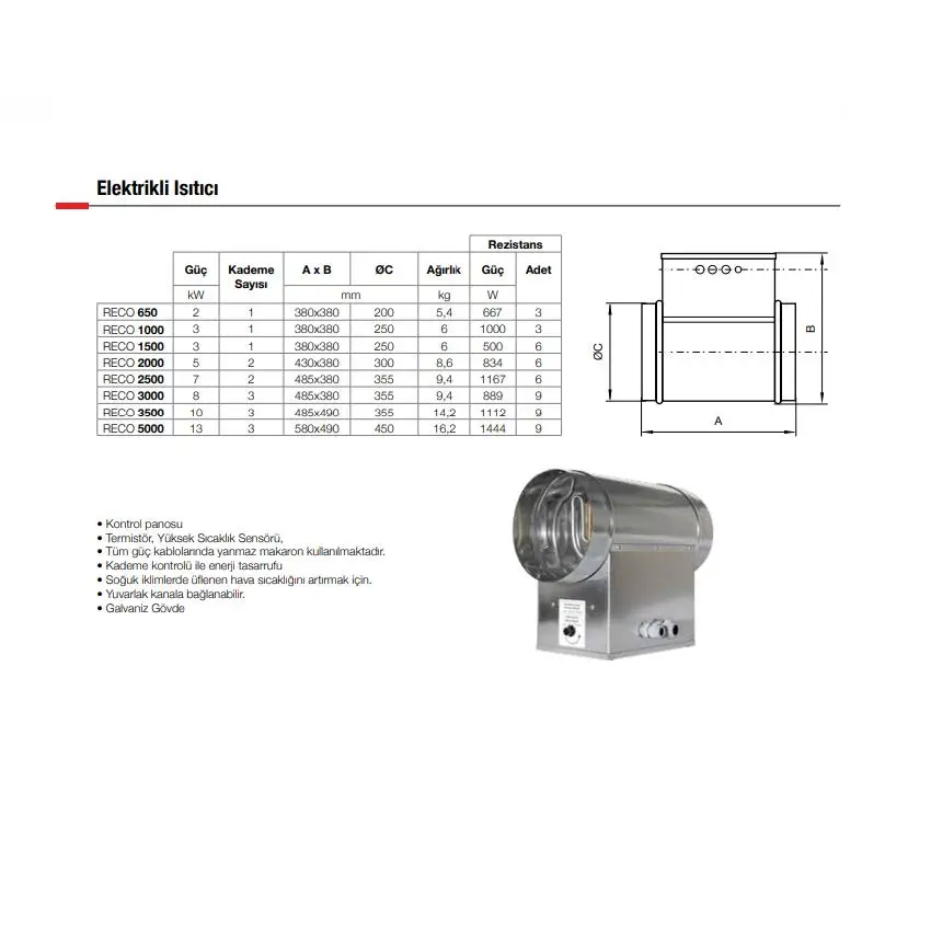 EtiketlerAfs Vantila 3 kW 1500 N Pro Kanal Tipi Elektrikli Isıtıcı Galvaniz Gövde Kontrol Panosu AGMair Agm Havalandırma